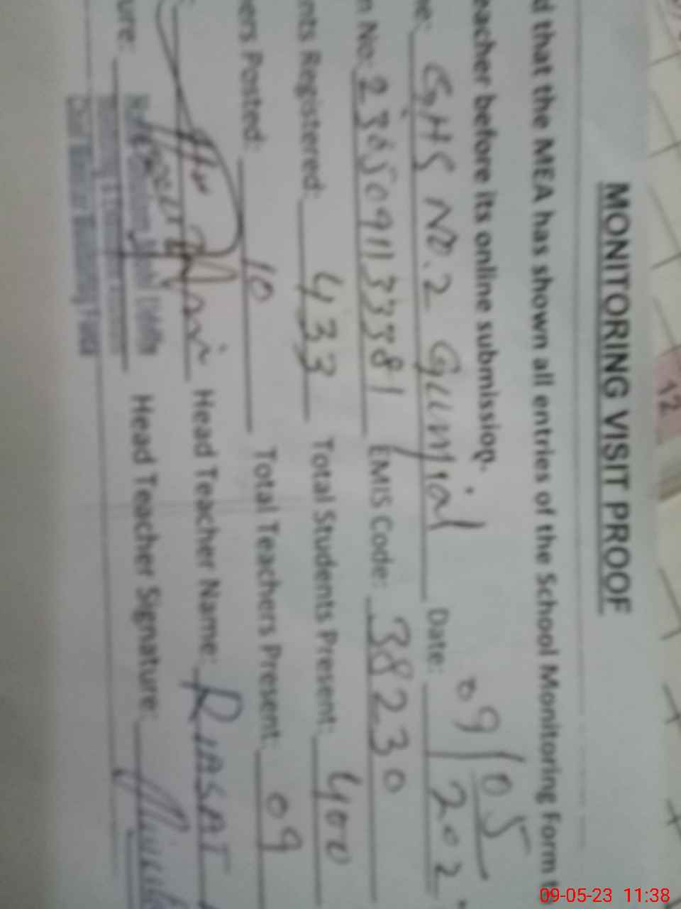| EMIS Code: 38230225 | Name of School: GHS NO. 2 GUNJIAL | |||