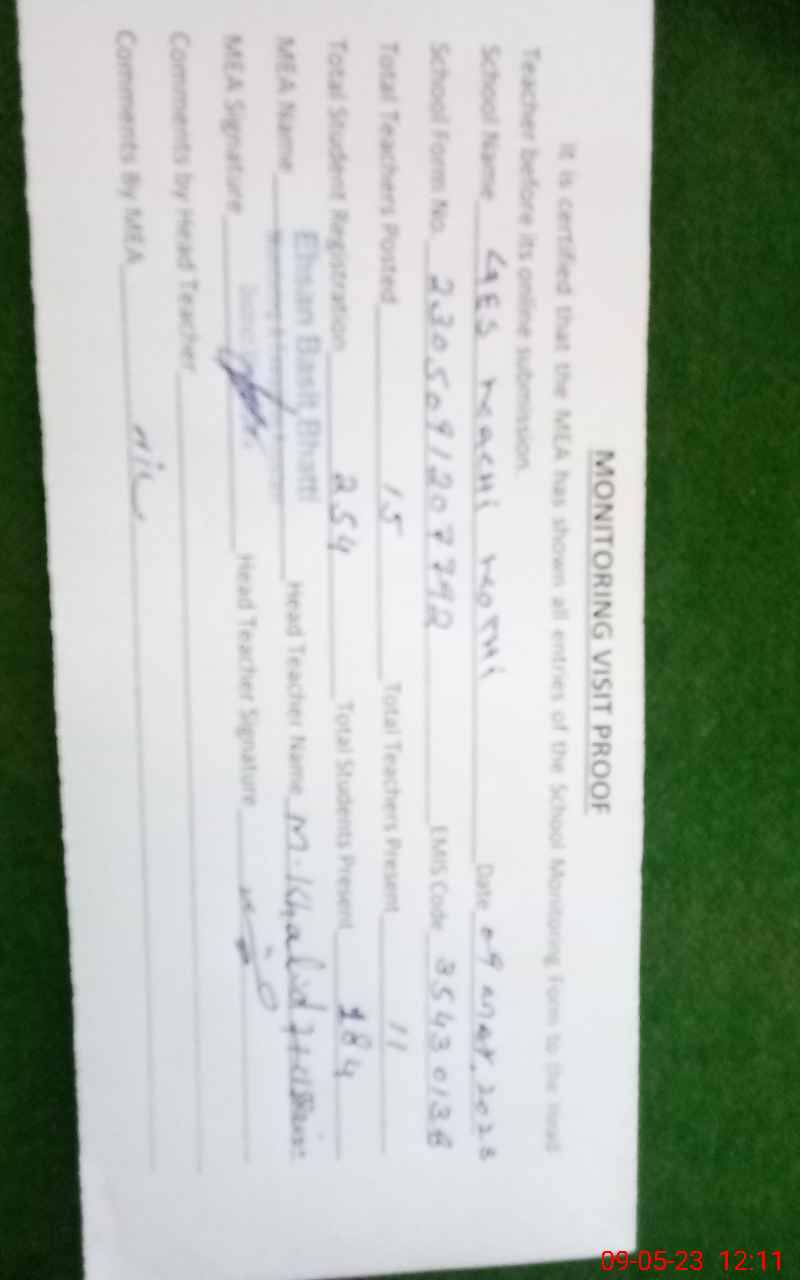 | Certified that this School was Inspected by the Undersigned MEA/DMO Today and the Information Stated Above is as Per Record. | |||||
