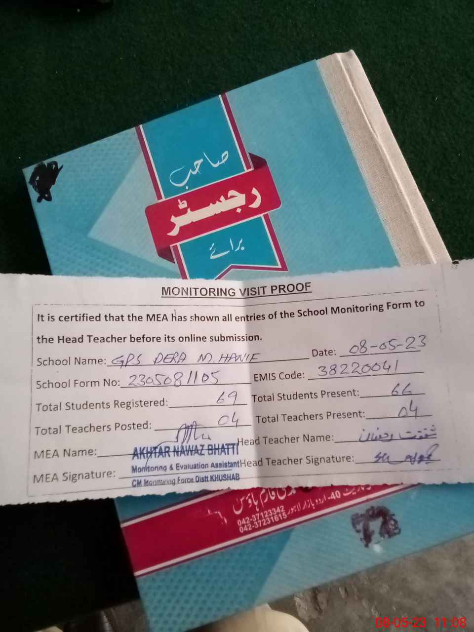 | EMIS Code: 38220041 | Name of School: GPS DERA MUHAMMAD HANIF | |||