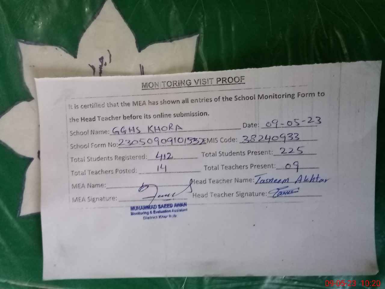 | EMIS Code: 38240933 | Name of School: GGHS KHURA | |||