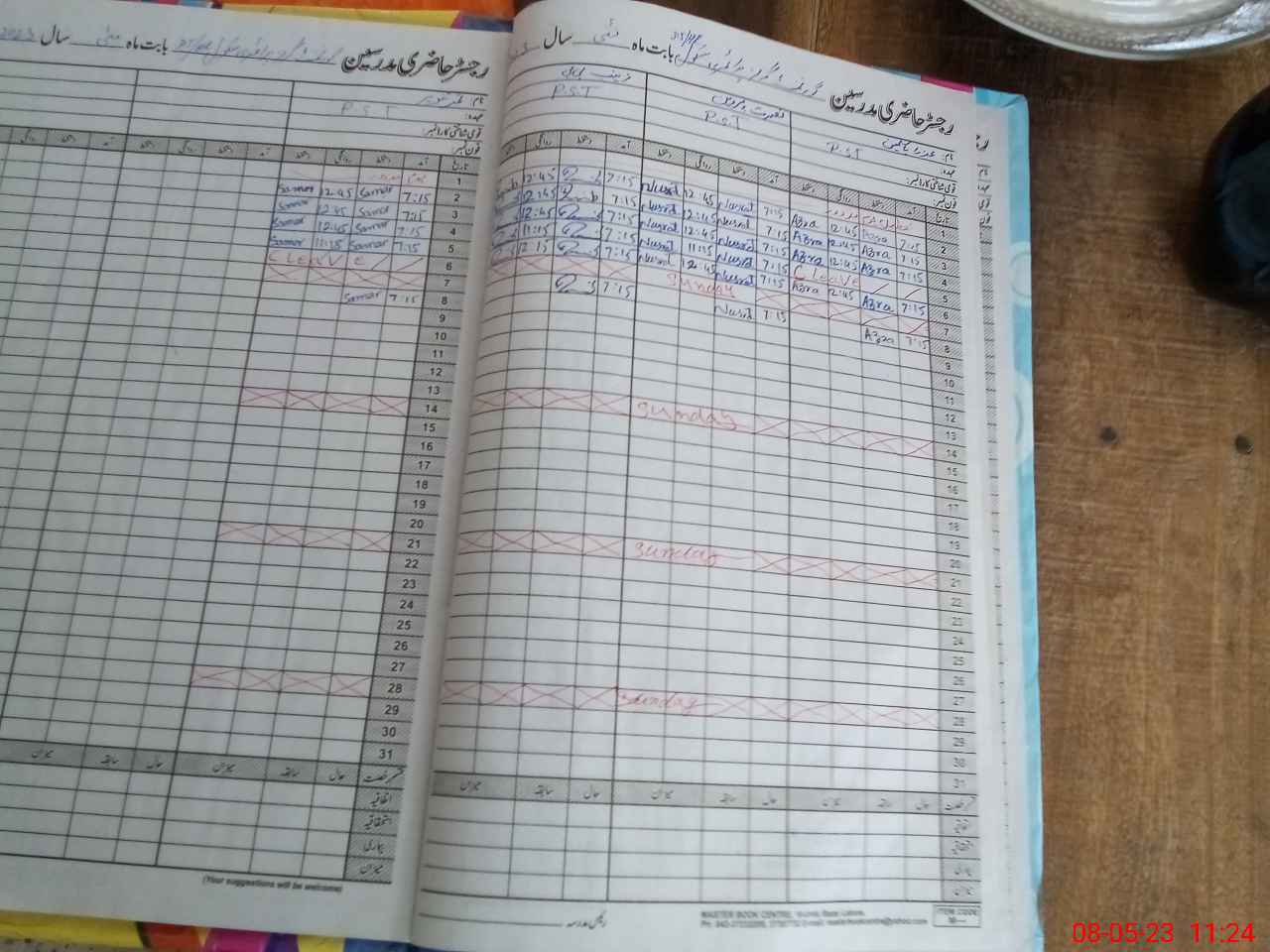 | CNIC | Full Name | Designation | R/C | Absence During Last Calender Month |