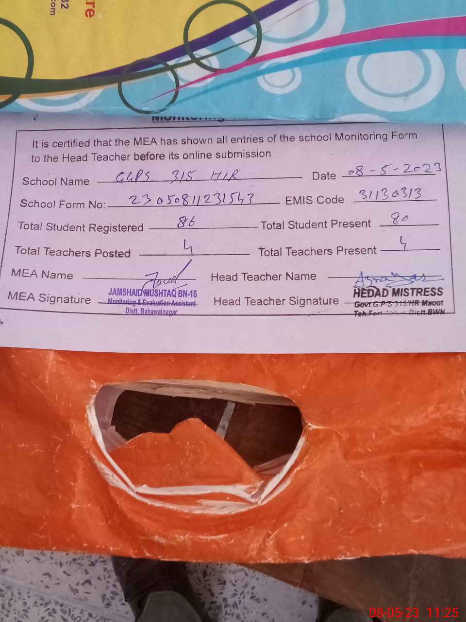 | Attendance Register | Head Teacher | MEA with School | Visit Proof |