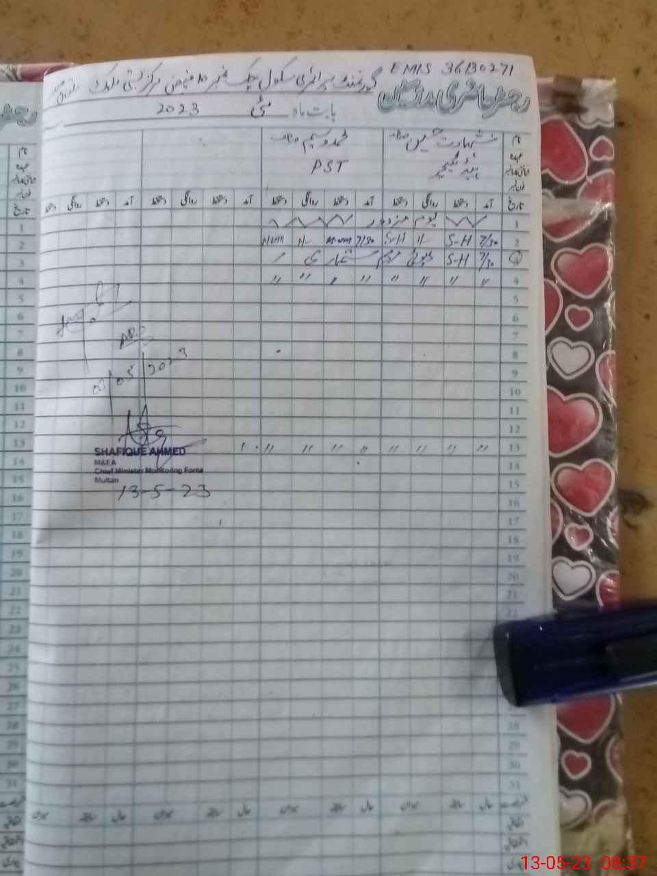 | Remarks (Use Separate Page if Required): Both 02 regular teacher are on census duty NSB teacher is present in school | |||||