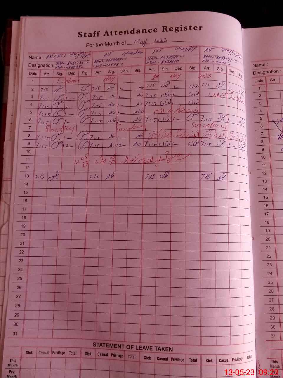 | Name: An**** Designation: (School Headmaster's/Headmistress's) PST Phone/Cell Number: 03**** |