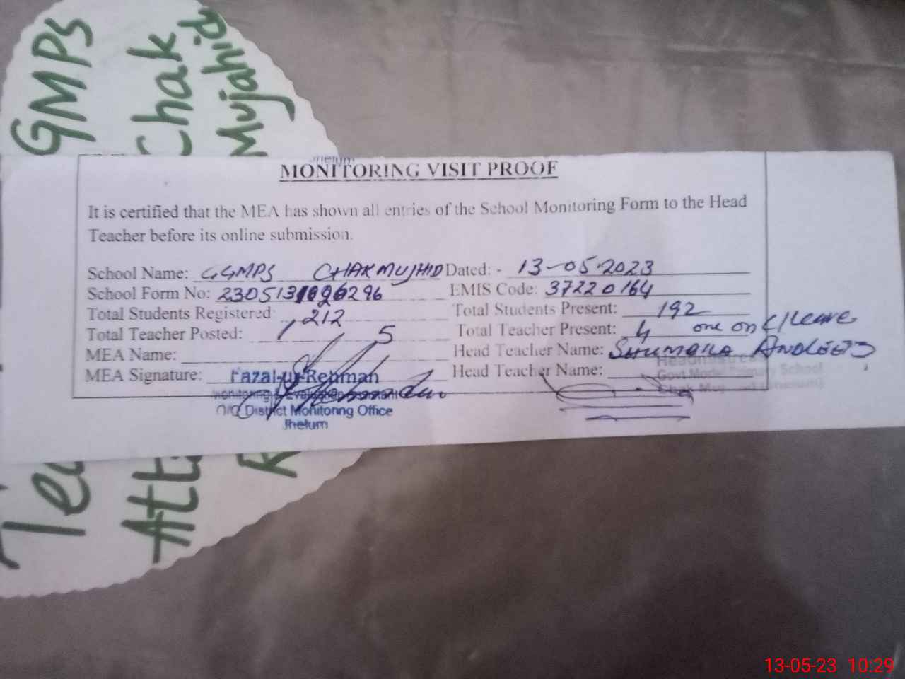 | EMIS Code: 37220164 | Name of School: GGMPS CHAK MUJAHID | |||