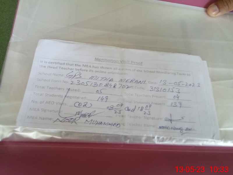 | EMIS Code: 31310153 | Name of School: GPS MITHA MERANI (After Noon) | |||