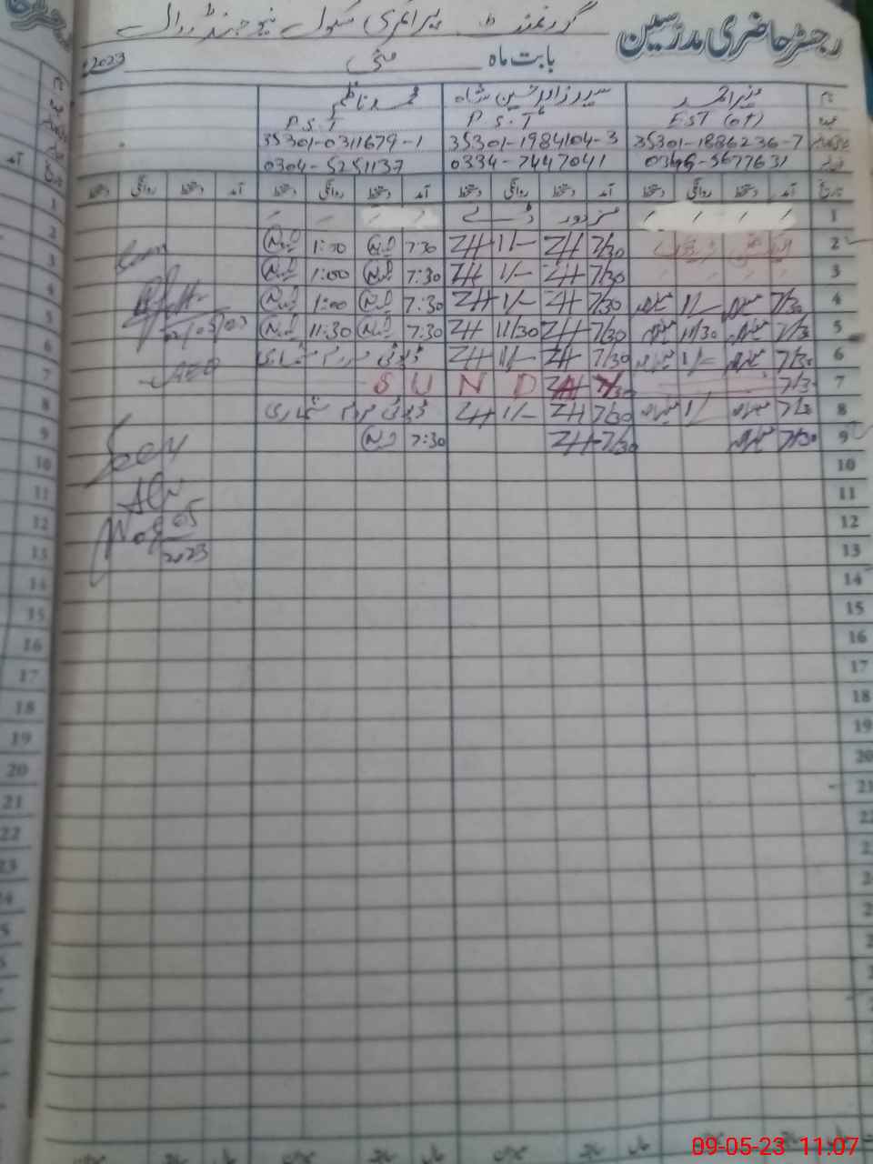 | Name: Mu**** Na**** Designation: (School Headmaster's/Headmistress's) PST Phone/Cell Number: 03**** |