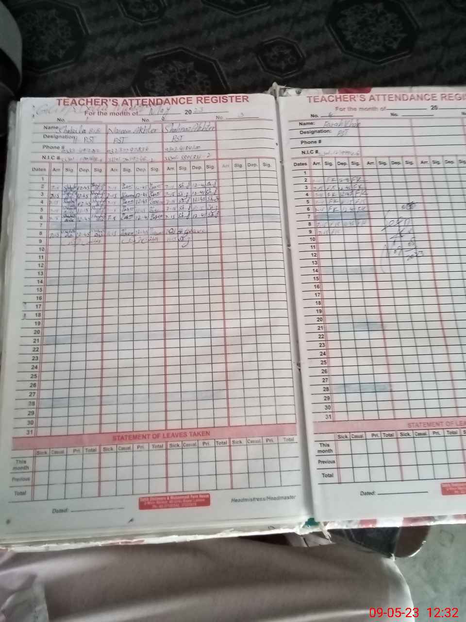 | Name: SH**** BI**** Designation: (School Headmaster's/Headmistress's) PTC/JV Phone/Cell Number: 03**** |