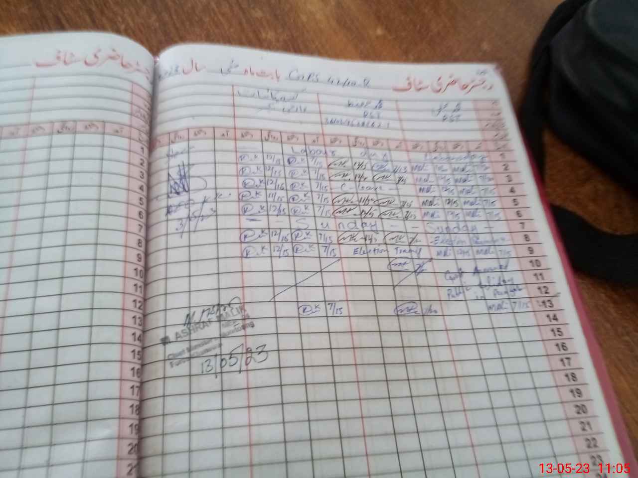 | CNIC | Full Name | Designation | R/C | Absence During Last Calender Month |