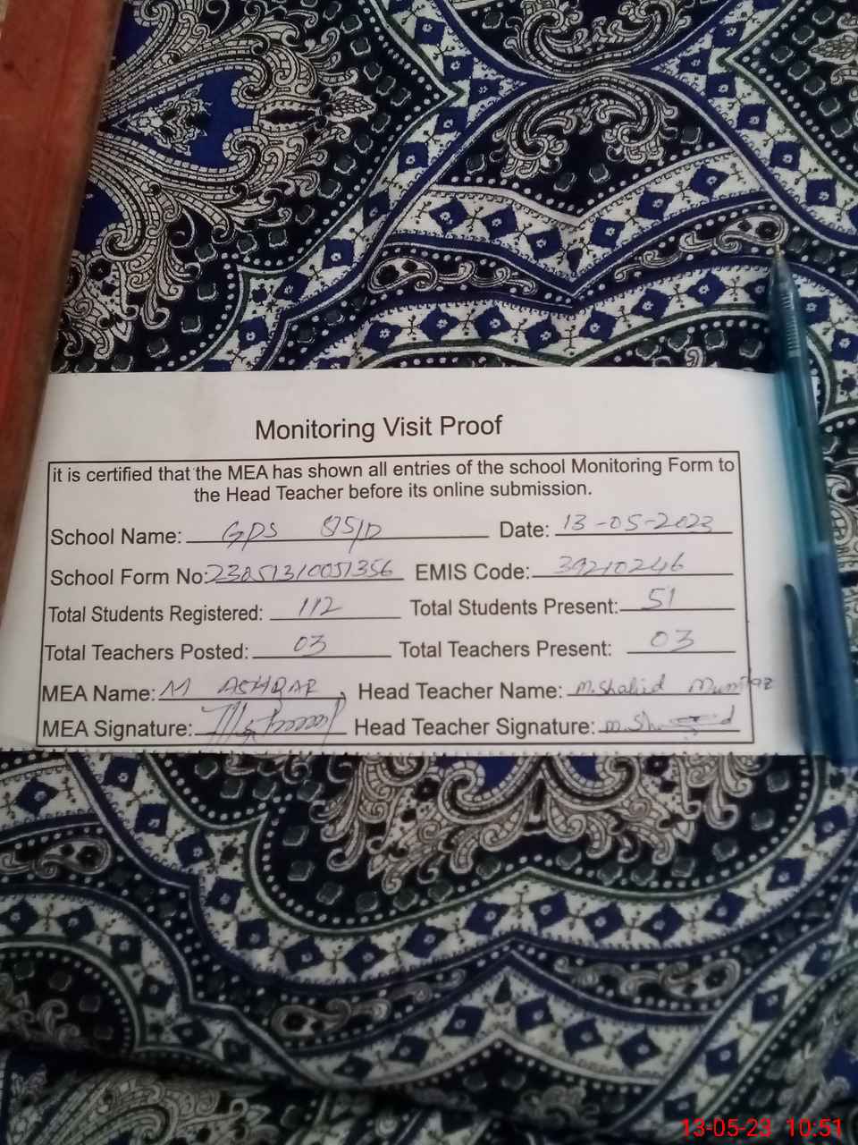 | Monitoring Date: 13-05-2023 | Start Time: 13-05-2023 10:05 AM | End Time: 13-05-2023 10:55 AM | Name of MEA: MU**** AS**** | |