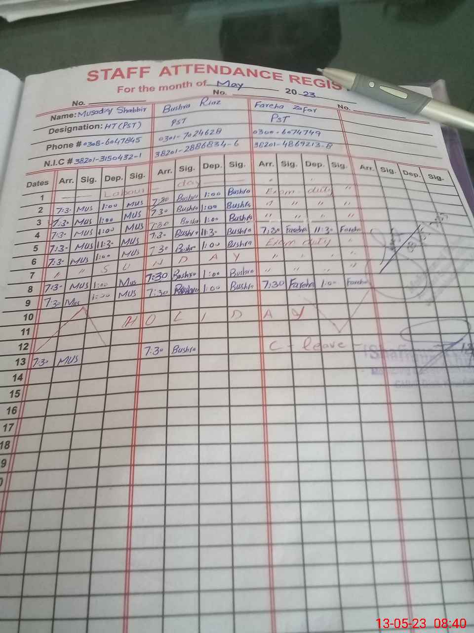| Name: Mu**** Sh**** Designation: (School Headmaster's/Headmistress's) PST Phone/Cell Number: 03**** |
