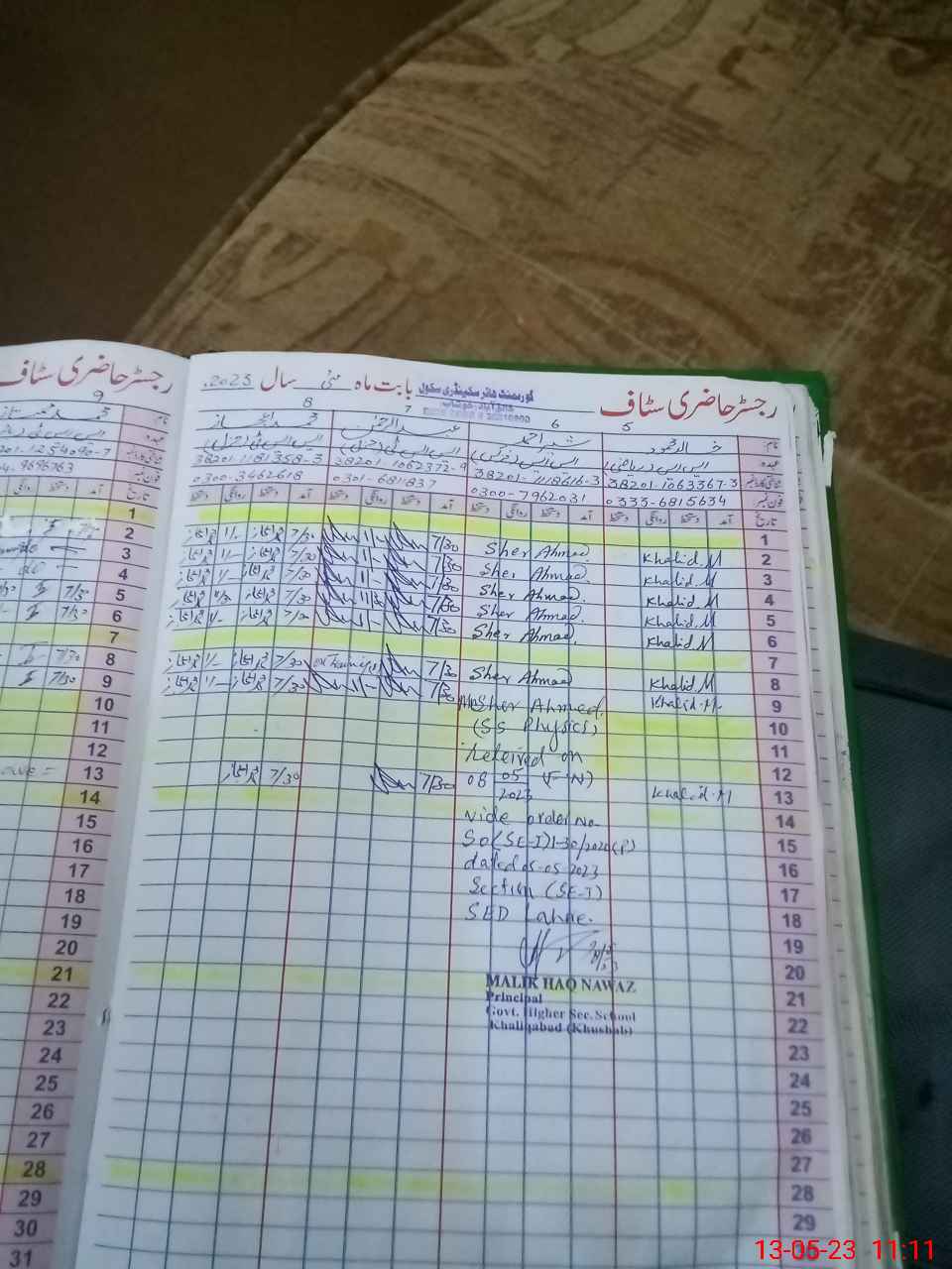 | Name: Mu**** Af**** Designation: (School Headmaster's/Headmistress's) Principal Phone/Cell Number: 03**** |