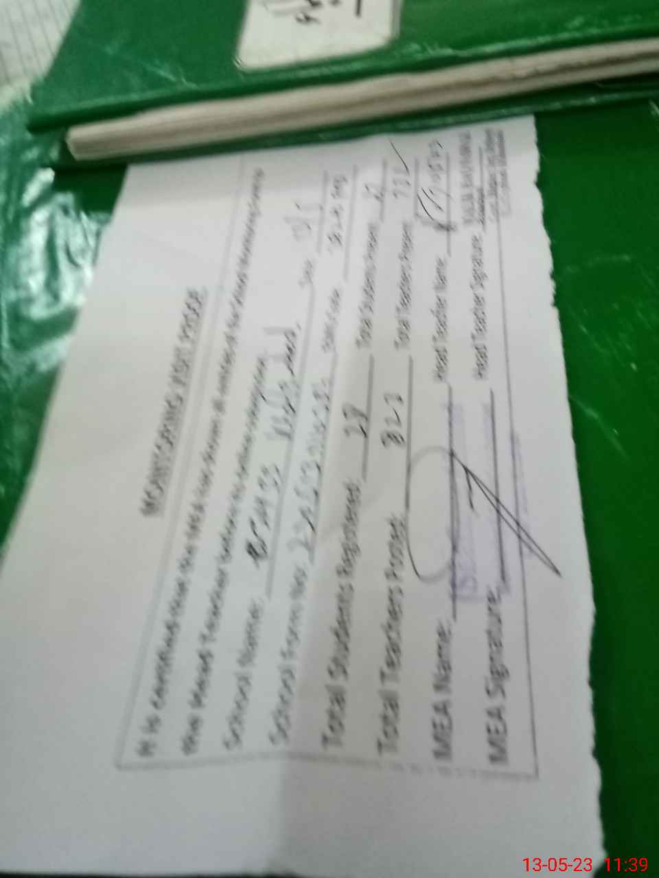 | Attendance Register | Head Teacher | MEA with School | Visit Proof |