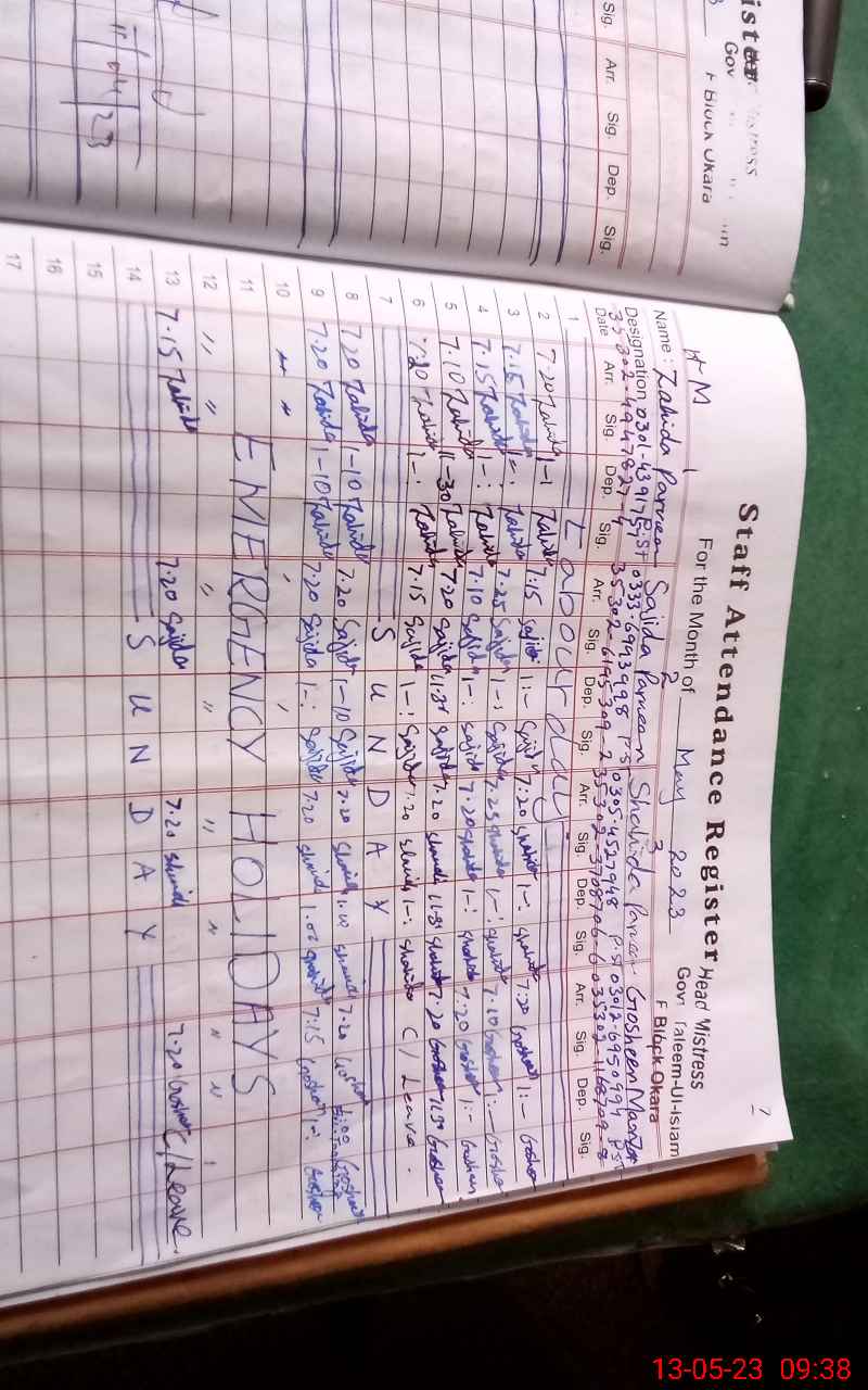 | Name: Sh**** Pa**** Designation: (School Headmaster's/Headmistress's) PST Phone/Cell Number: 03**** |