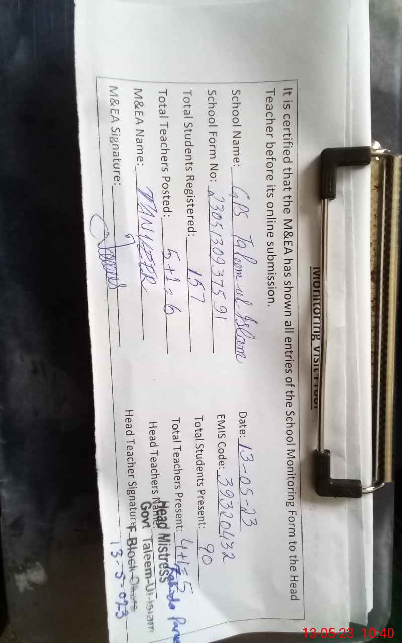 | EMIS Code: 39320432 | Name of School: GPS TALEEM-UL-ISLAM | |||