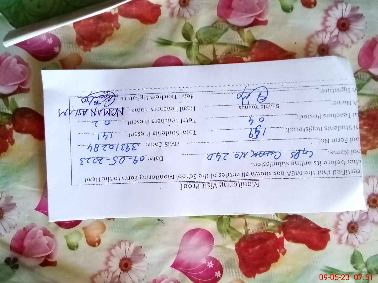 | Name: MU**** IJ**** Designation: (School Headmaster's/Headmistress's) PST Phone/Cell Number: 03**** |