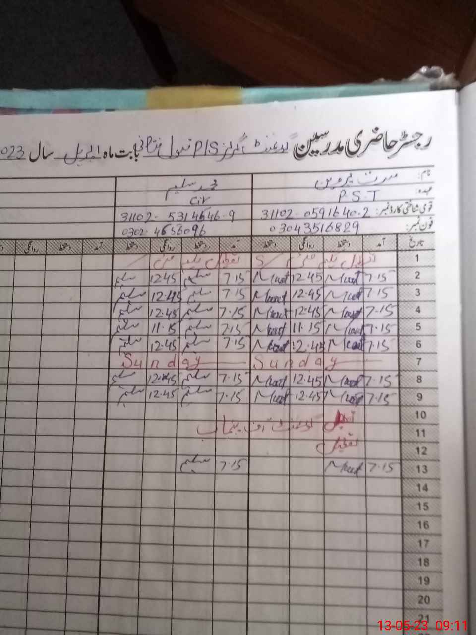 | Name: MU**** PE**** Designation: (School Headmaster's/Headmistress's) PST Phone/Cell Number: 03**** |