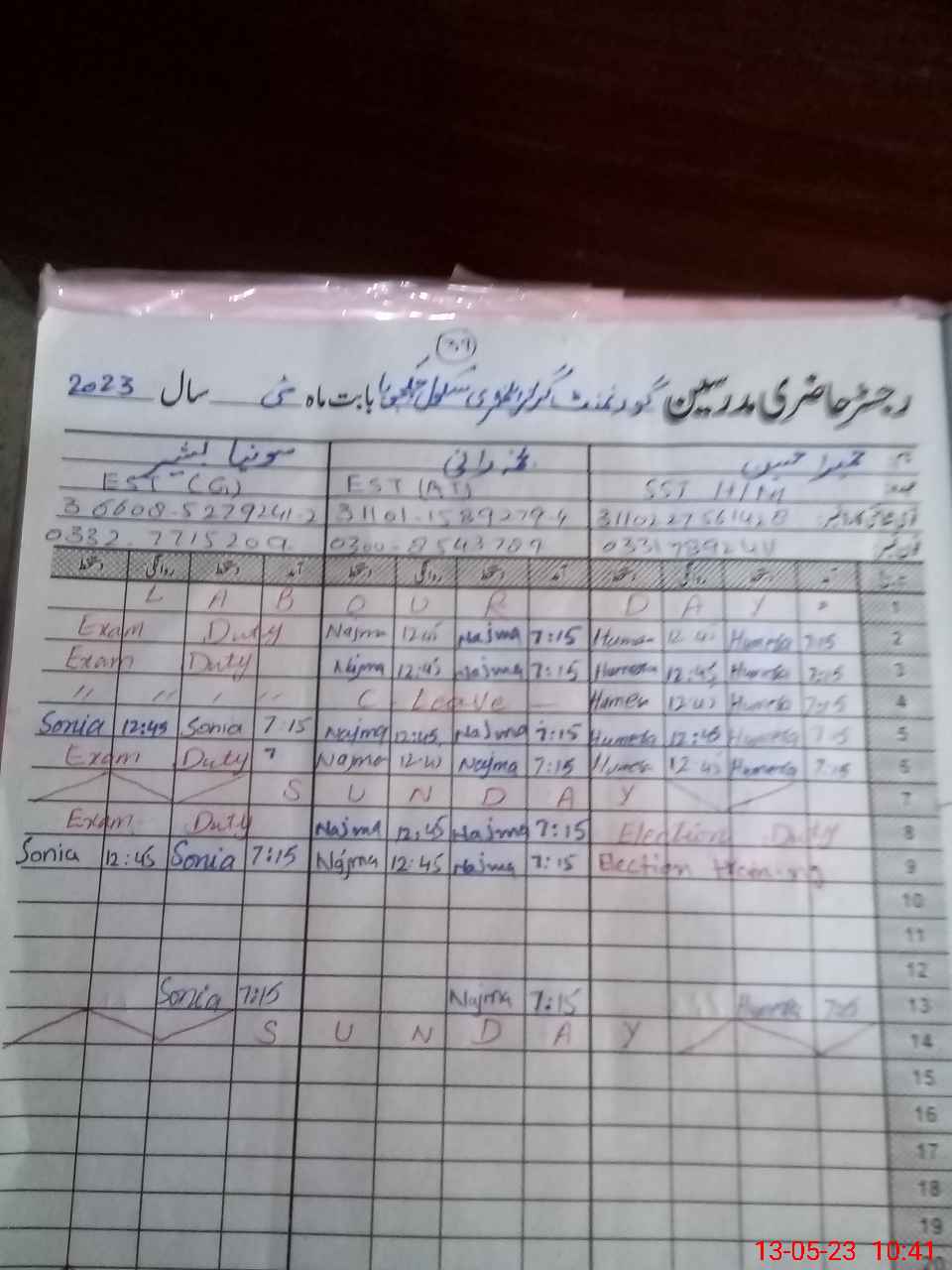 | CNIC | Full Name | Designation | R/C | Absence During Last Calender Month |