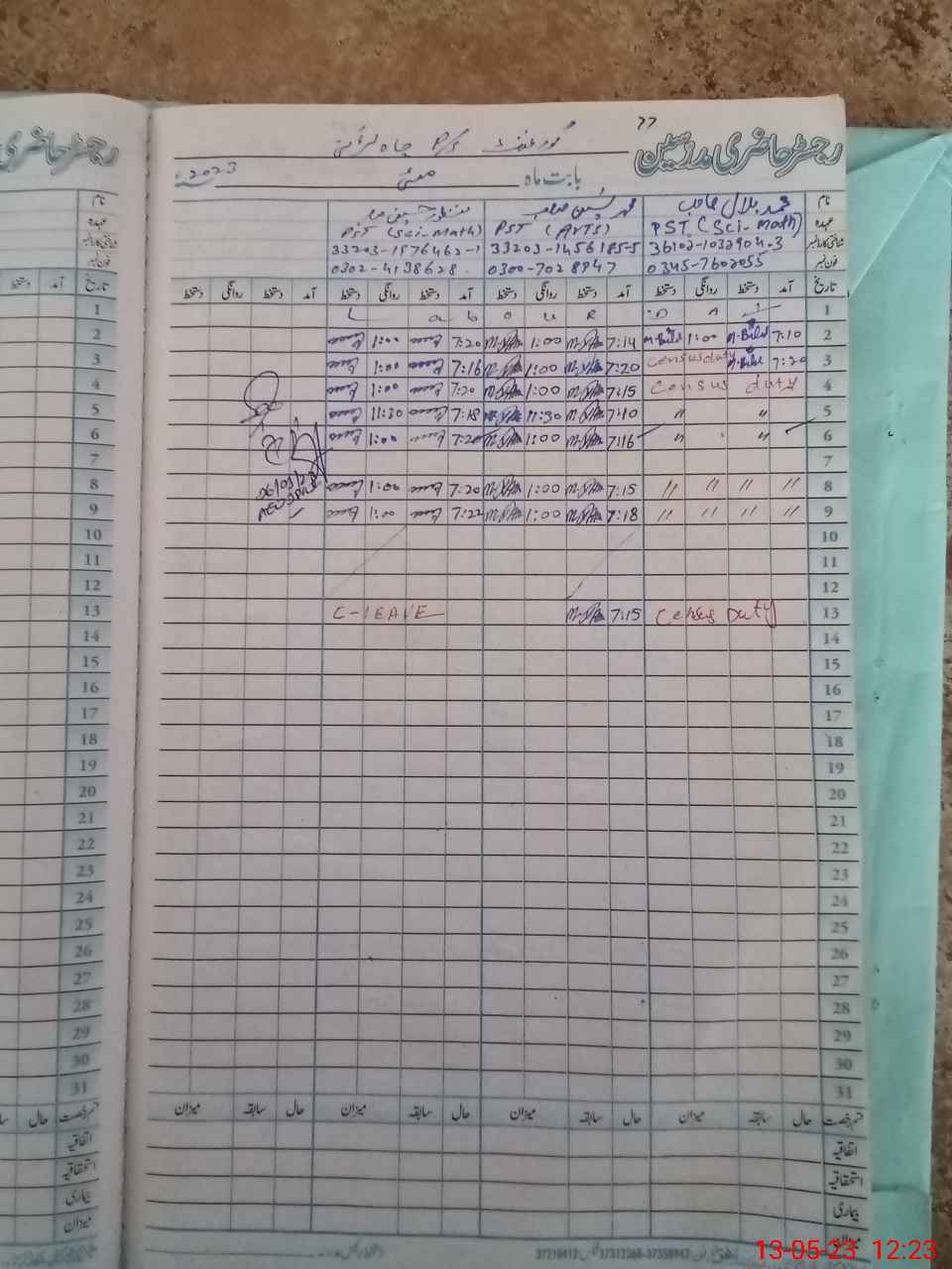 | Name: MBi**** Designation: (School Headmaster's/Headmistress's) PST Phone/Cell Number: 03**** |