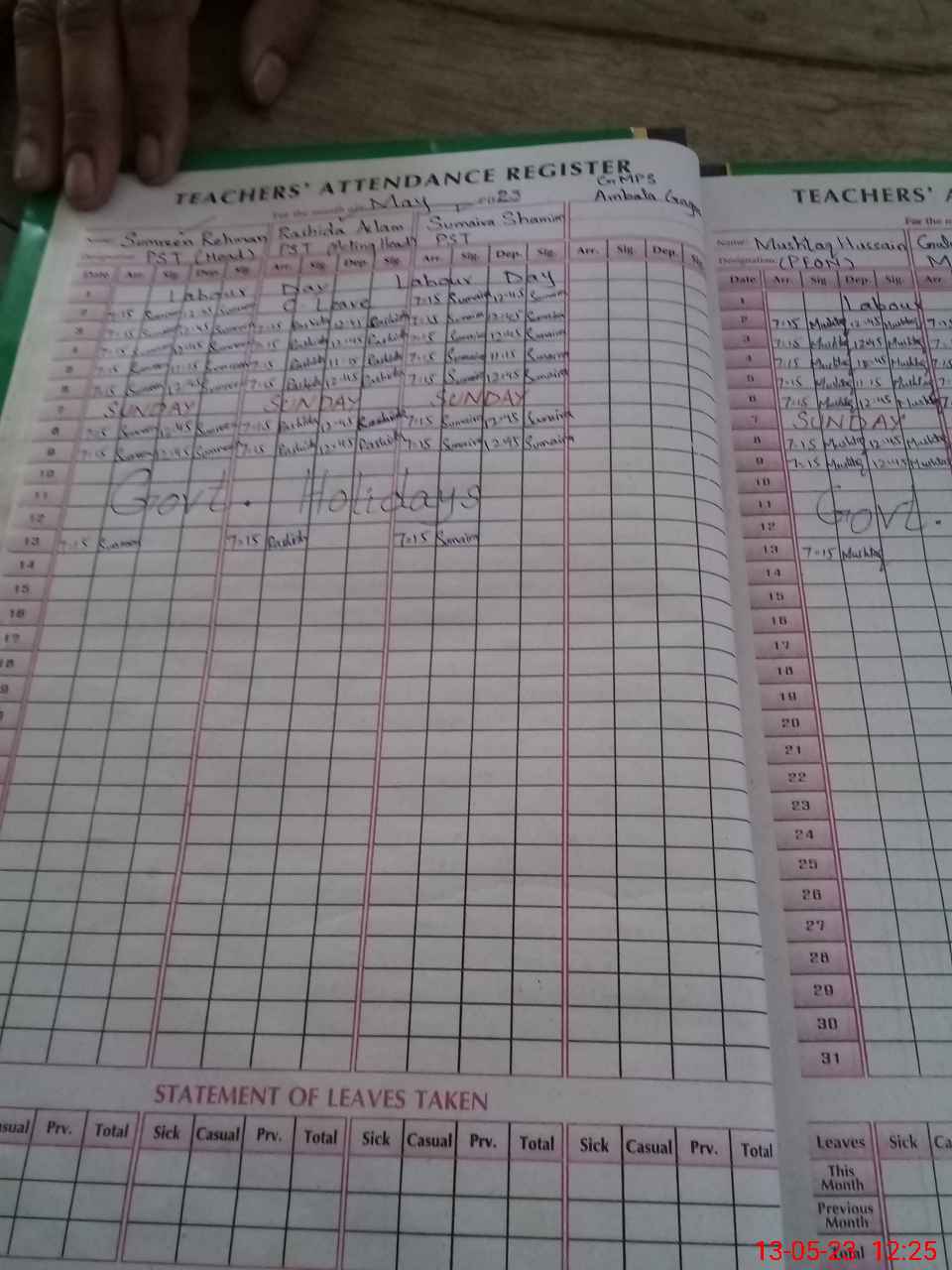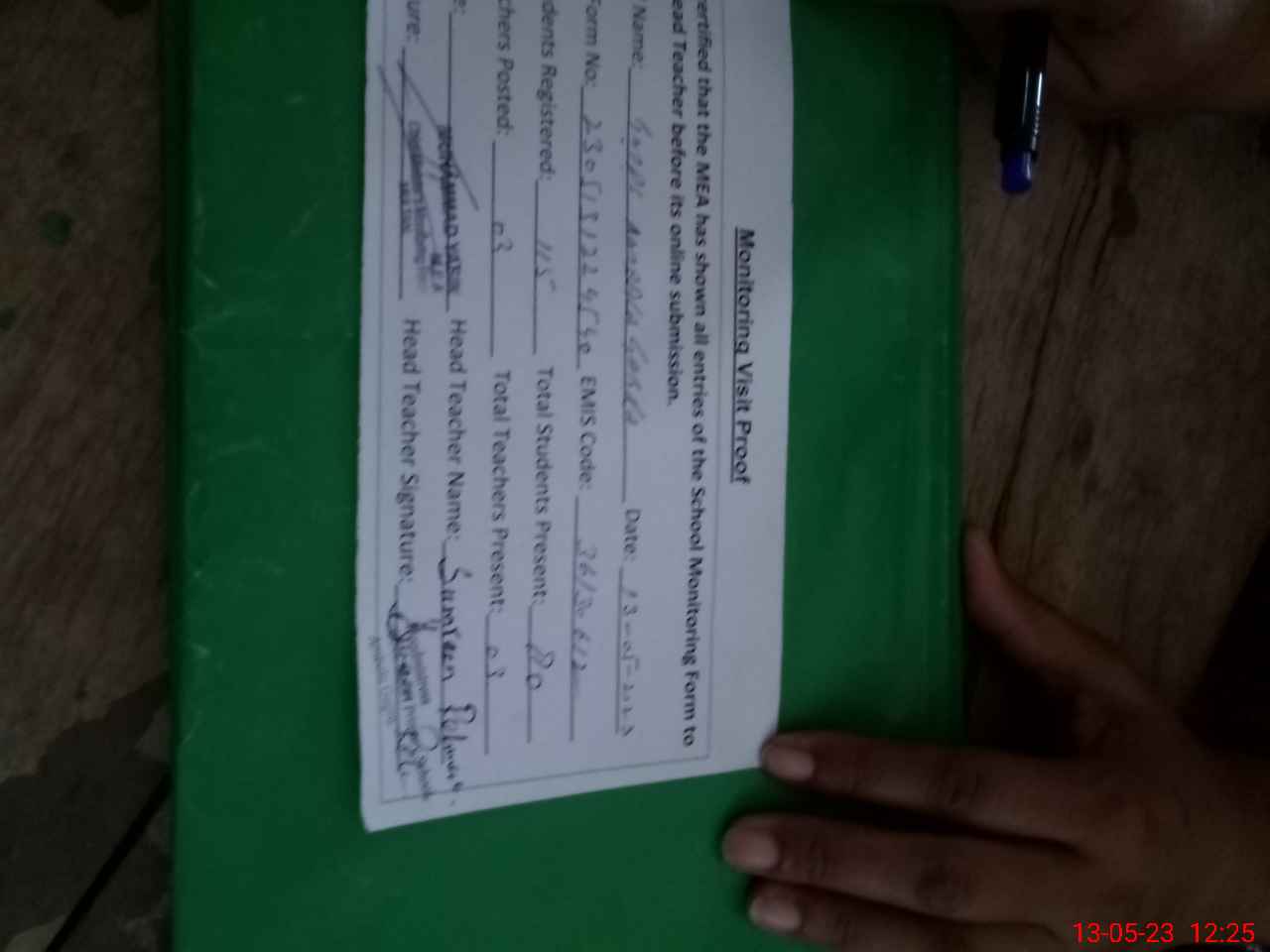 | Attendance Register | Head Teacher | MEA with School | Visit Proof |
