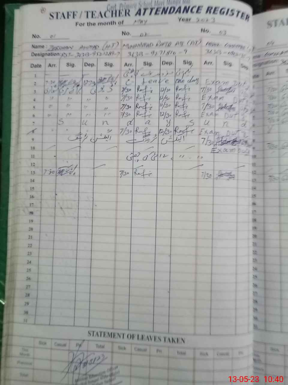 | Leave | Duty | Absent | Maternity | Medical | Ex- Pak |