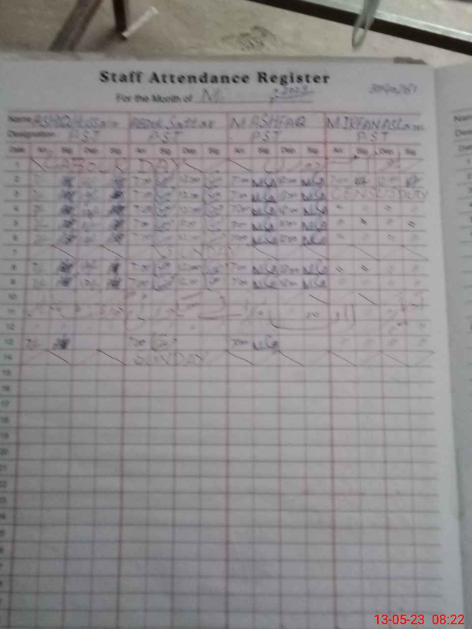 | CNIC | Full Name | Designation | R/C | Absence During Last Calender Month |