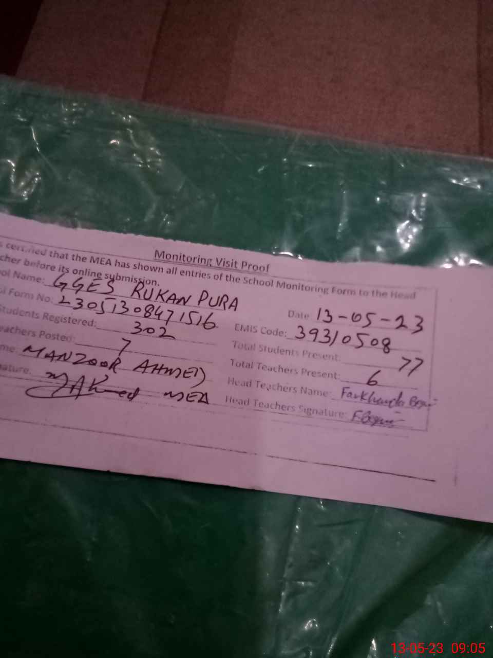 | EMIS Code: 39310508 | Name of School: GGES RUKAN PURA | |||