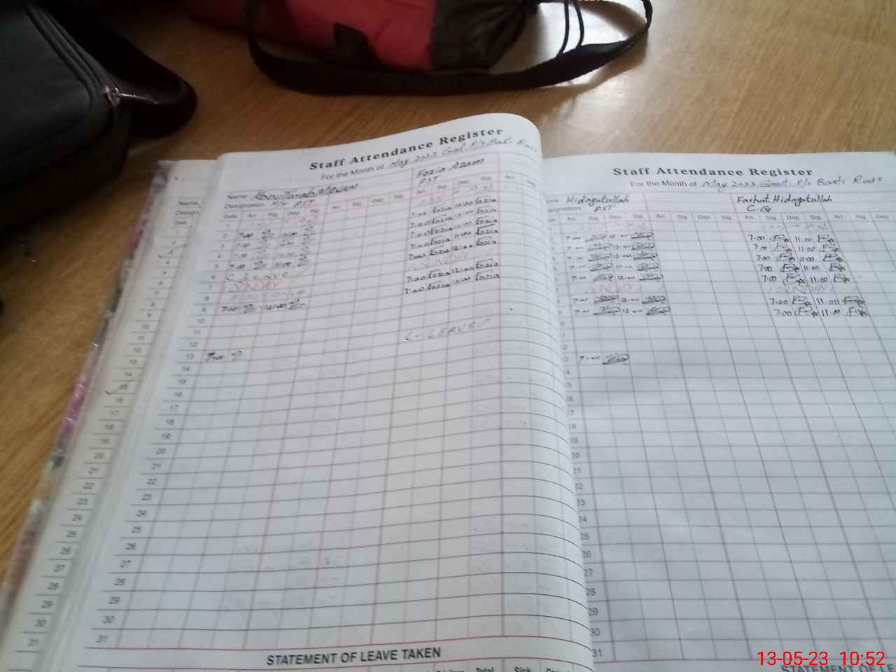 | CNIC | Full Name | Designation | R/C | Absence During Last Calender Month |