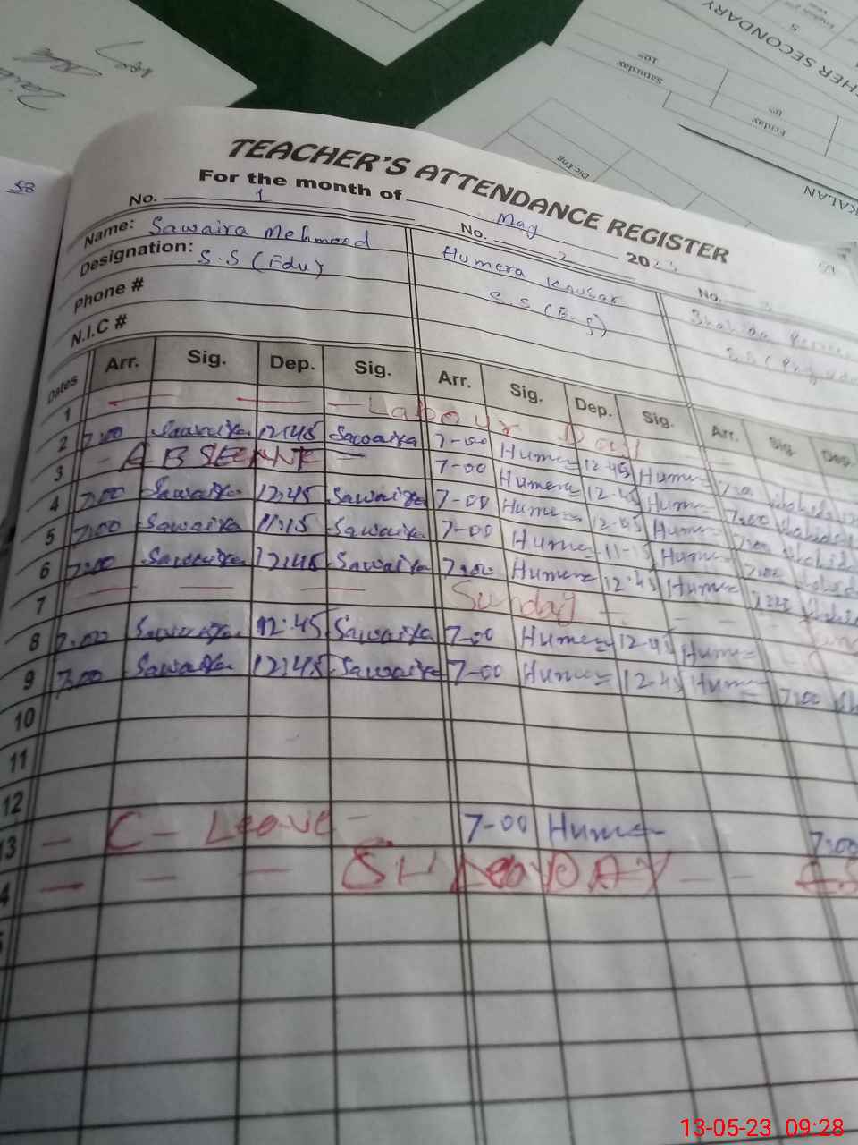 | Name: SA**** ME**** Designation: (School Headmaster's/Headmistress's) I C PRINCIPAL Phone/Cell Number: 03**** |