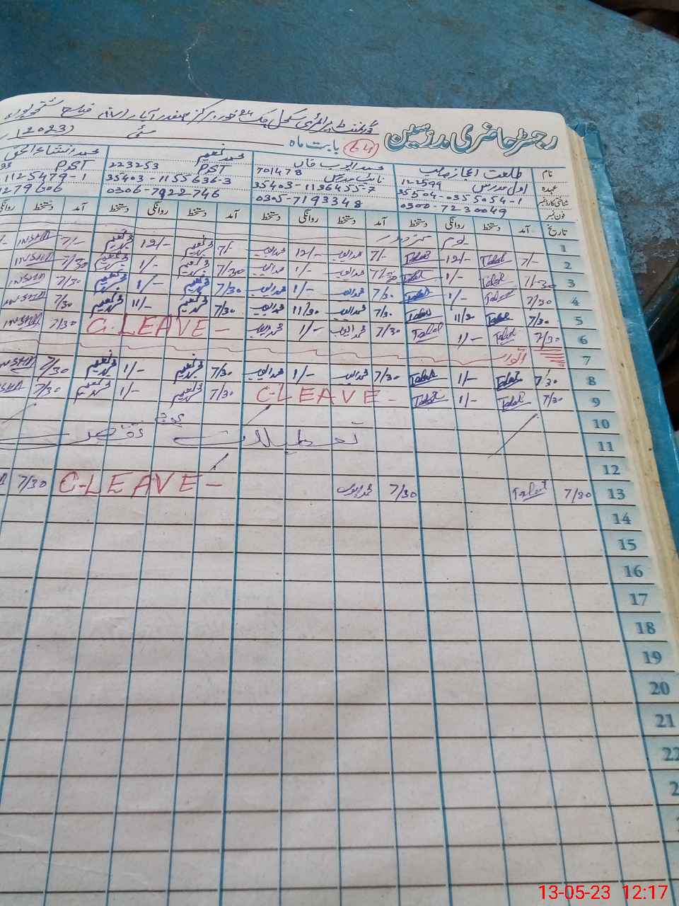 | CNIC | Full Name | Designation | R/C | Absence During Last Calender Month |