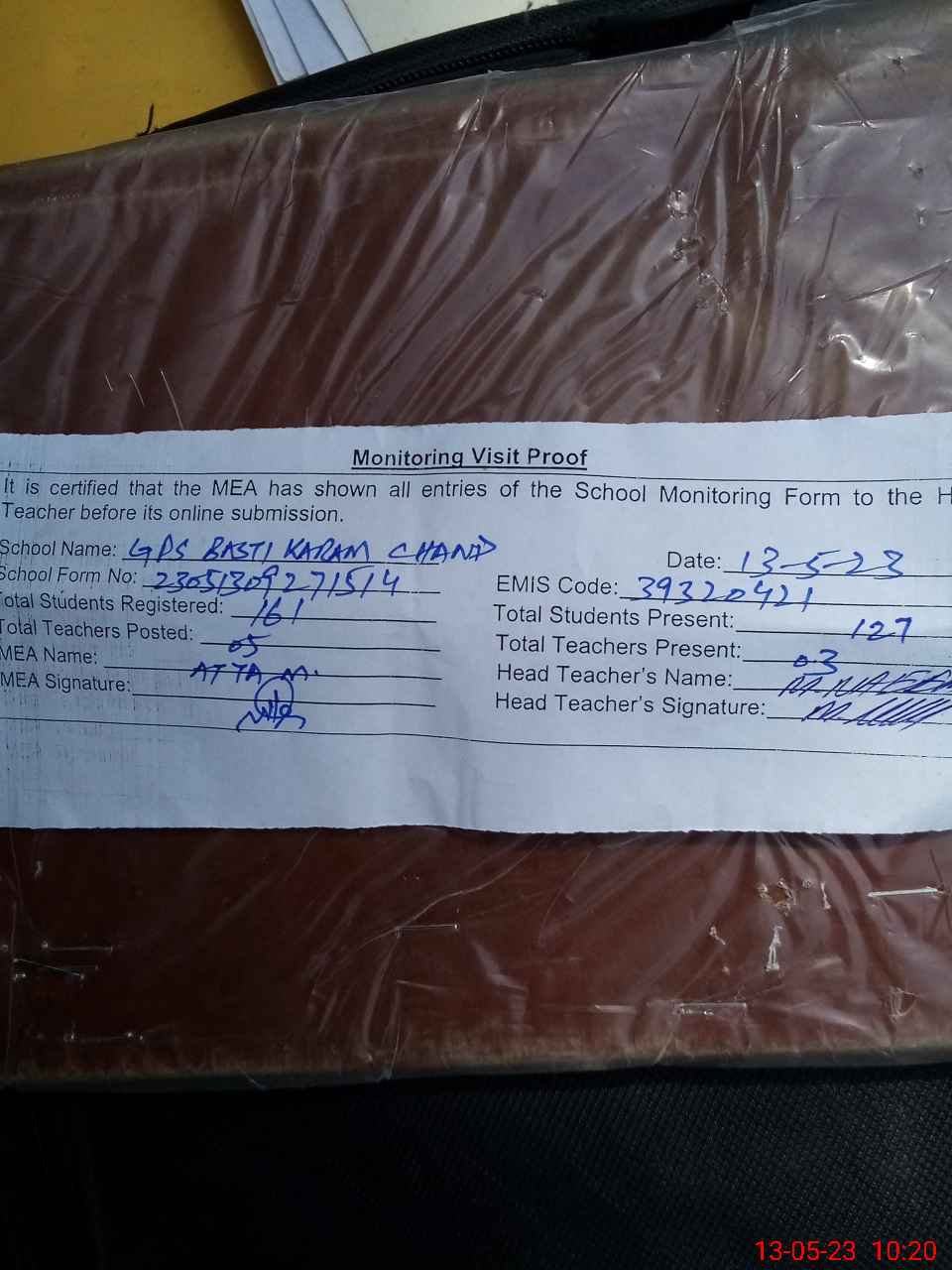 | EMIS Code: 39320421 | Name of School: GPS BASTI KARAM CHAND | |||