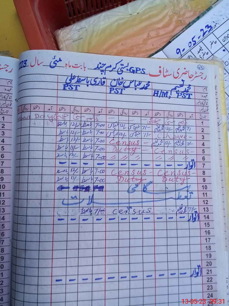 | Name: RA**** MU**** NA**** Designation: (School Headmaster's/Headmistress's) PST Phone/Cell Number: 03**** |