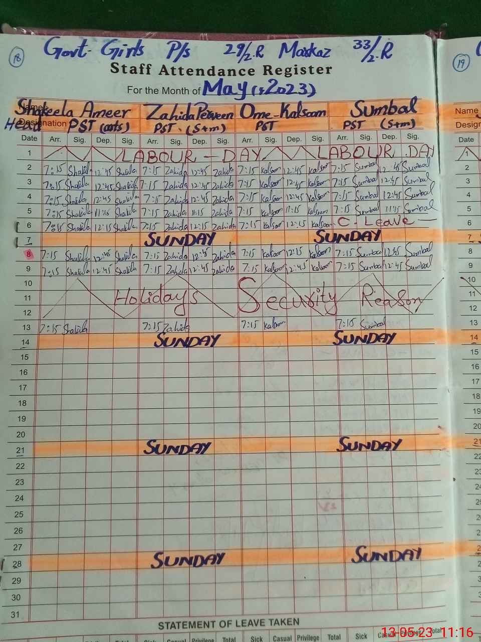 | Leave | Duty | Absent | Maternity | Medical | Ex- Pak |