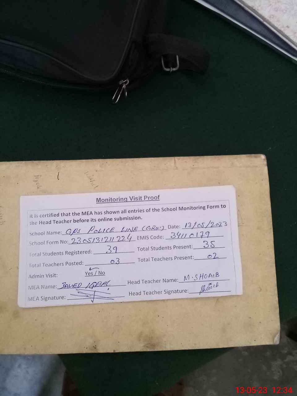 | Attendance Register | Head Teacher | MEA with School | Visit Proof |