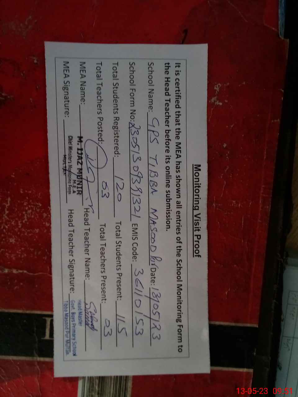 | EMIS Code: 36110153 | Name of School: GPS TIBBA MASOOD PUR P/O ISMAILABAD | |||