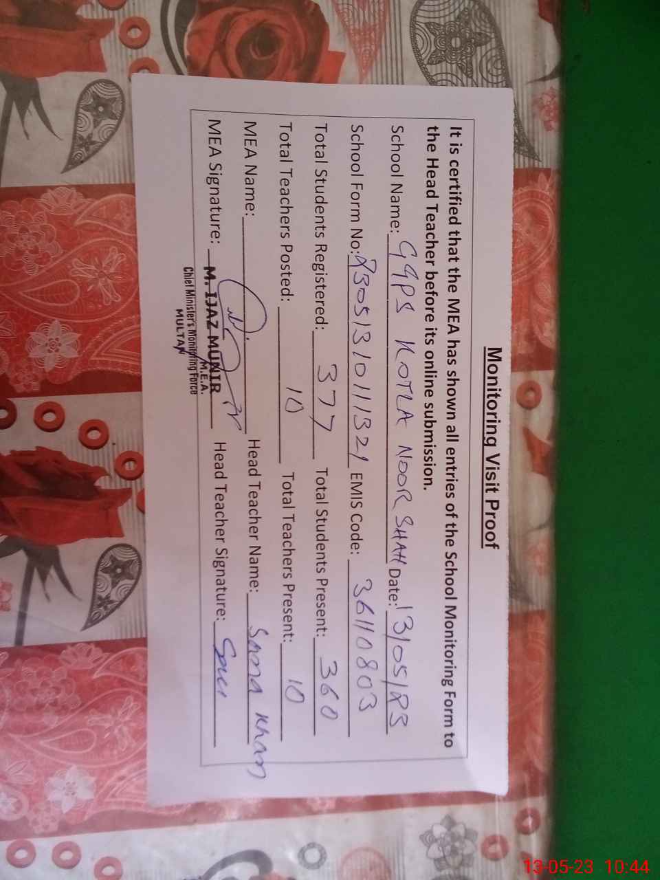 | EMIS Code: 36110803 | Name of School: GGPS KOTLA NOOR SHAH MUZAFARABAD | |||