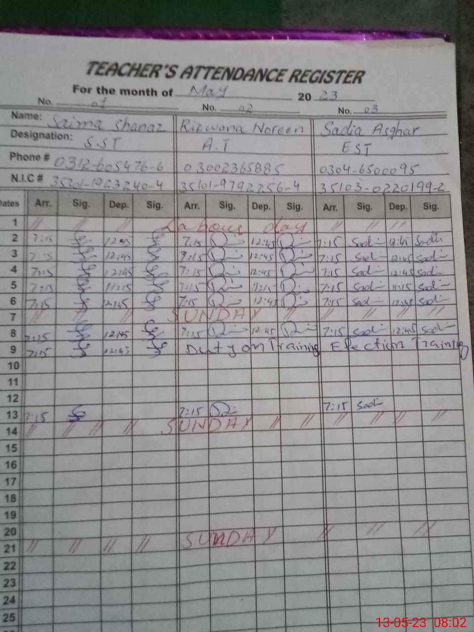 | Name: SA**** SH**** Designation: (School Headmaster's/Headmistress's) S.S.T.(Science) Phone/Cell Number: 03**** |