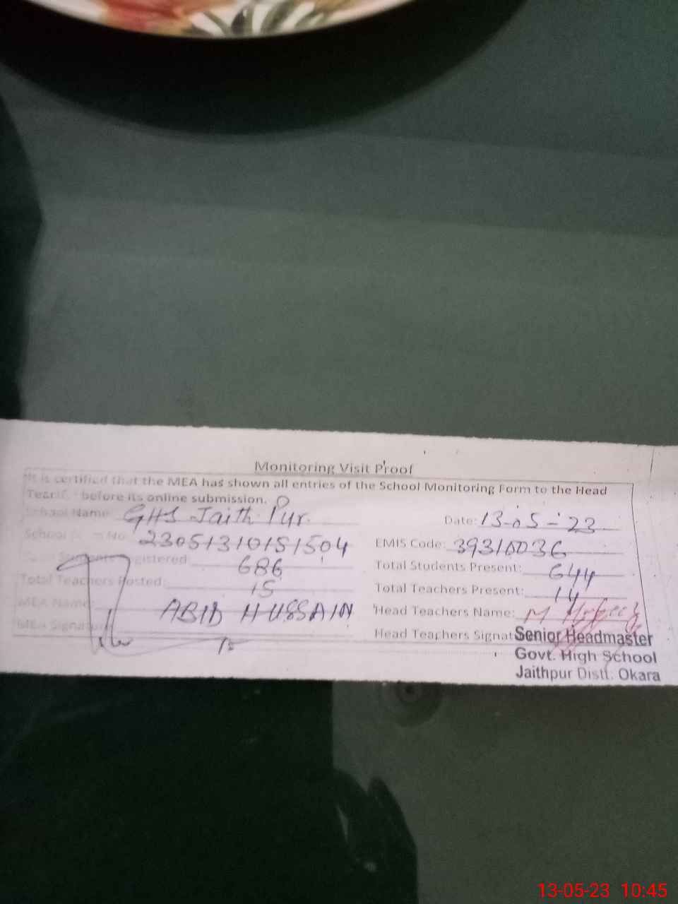 | EMIS Code: 39310036 | Name of School: GHS JAITH PUR | |||