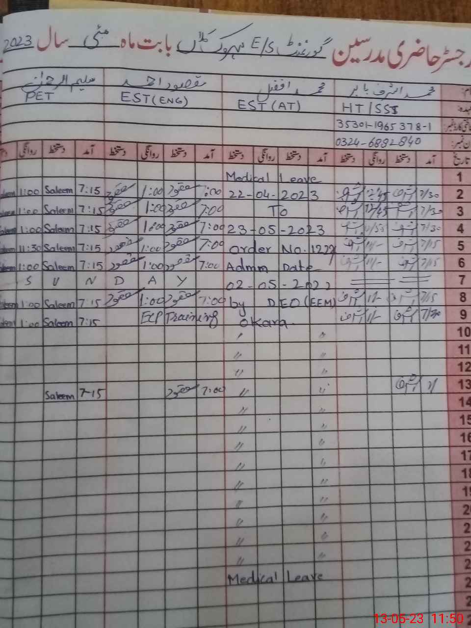 | Name: MU**** AS**** Ba**** Designation: (School Headmaster's/Headmistress's) Headmaster Phone/Cell Number: 03**** |