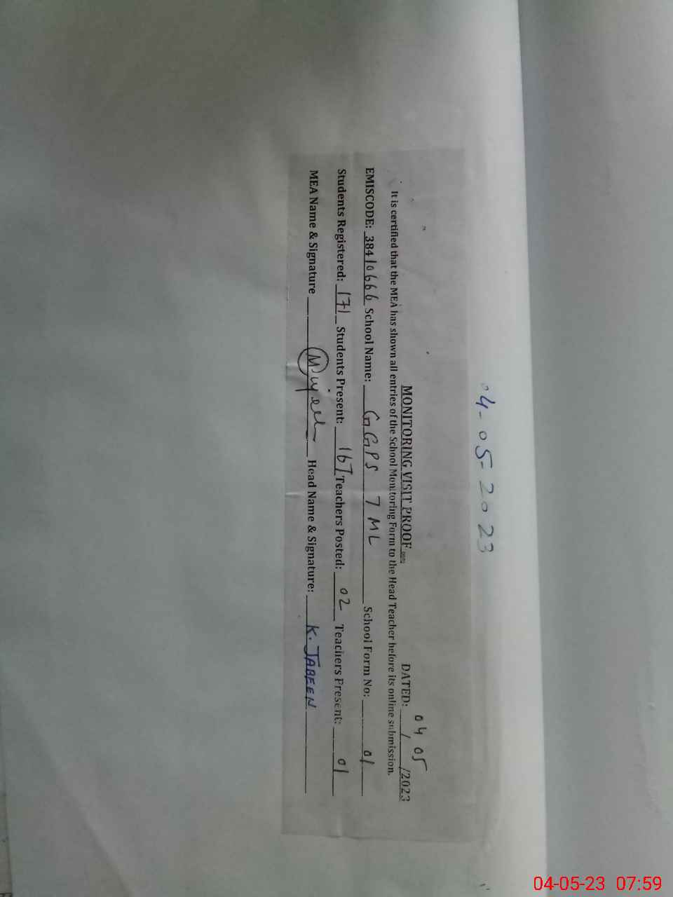 | EMIS Code: 38410666 | Name of School: GGPS CHAK NO.7 ML | |||