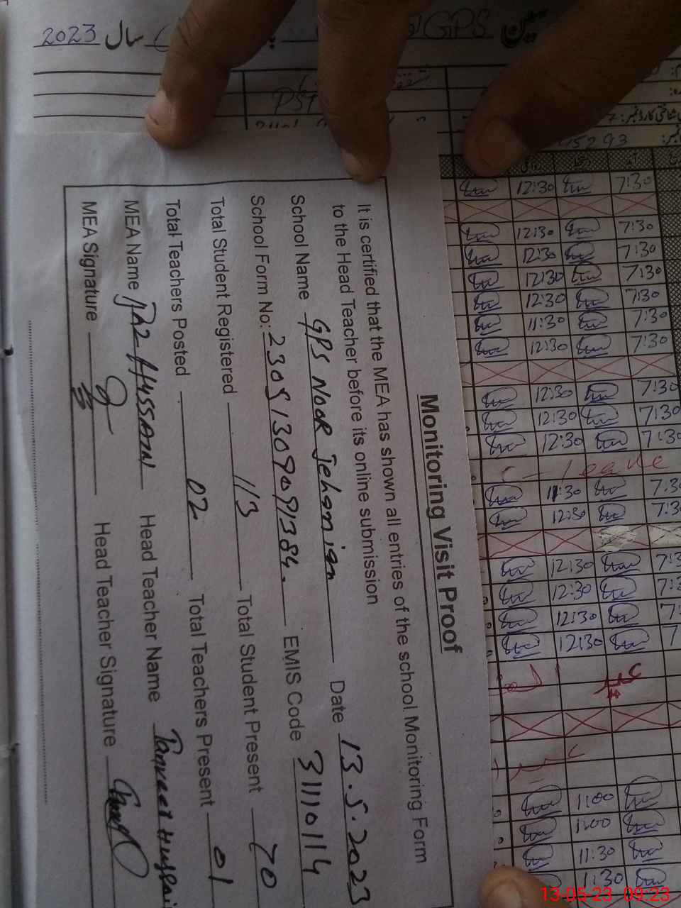 | EMIS Code: 31110114 | Name of School: GPS NOOR JAHANIAN | |||