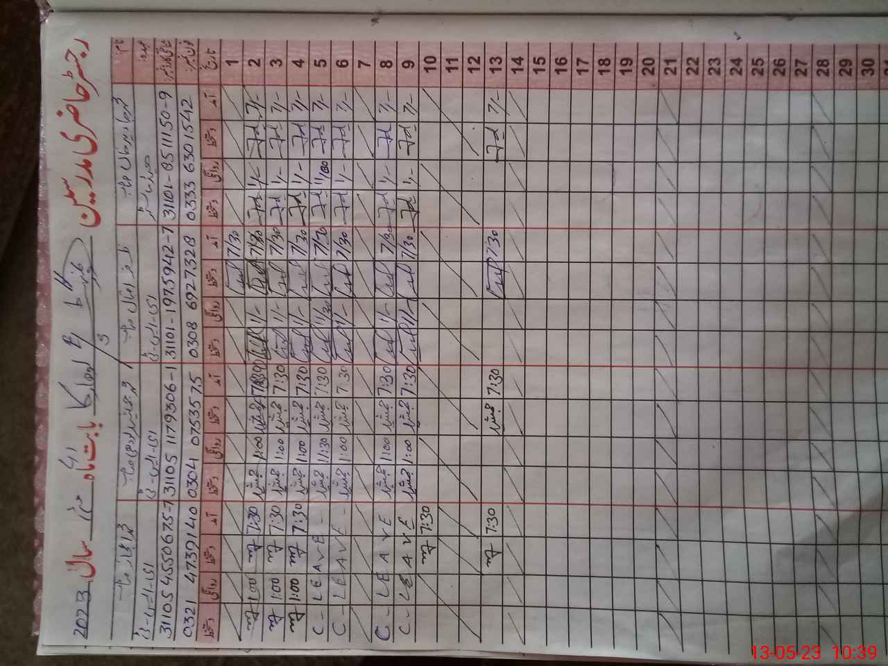 | CNIC | Full Name | Designation | R/C | Absence During Last Calender Month |