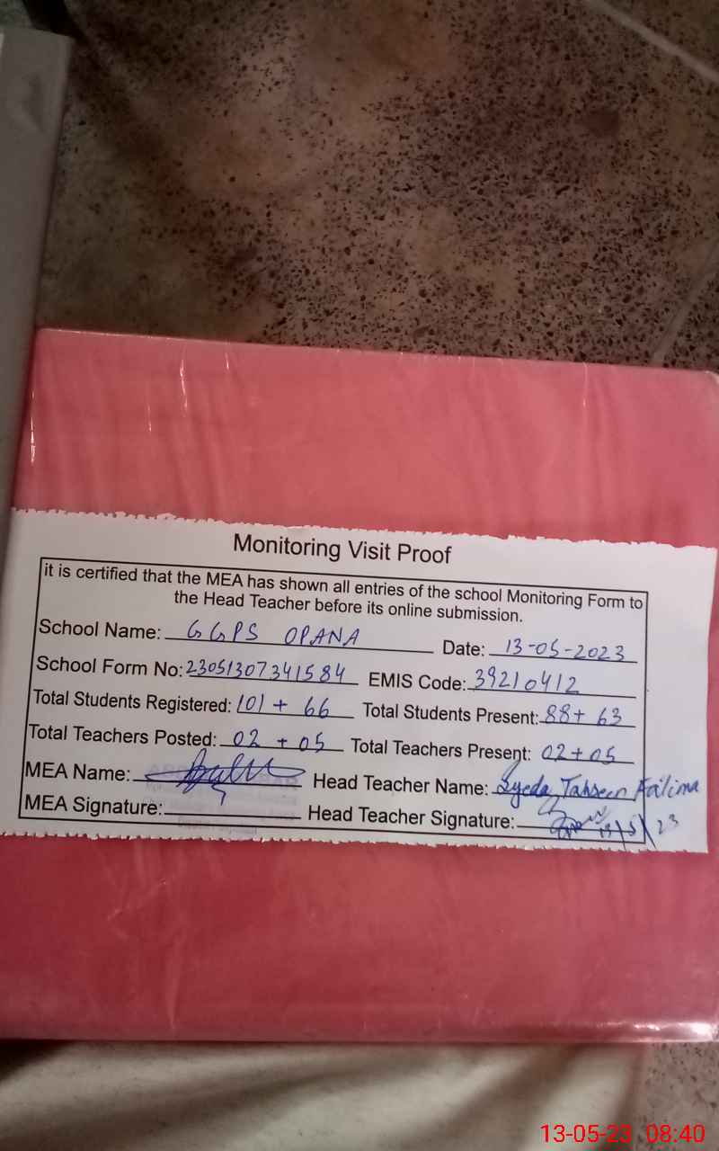 | Attendance Register | Head Teacher | MEA with School | Visit Proof |