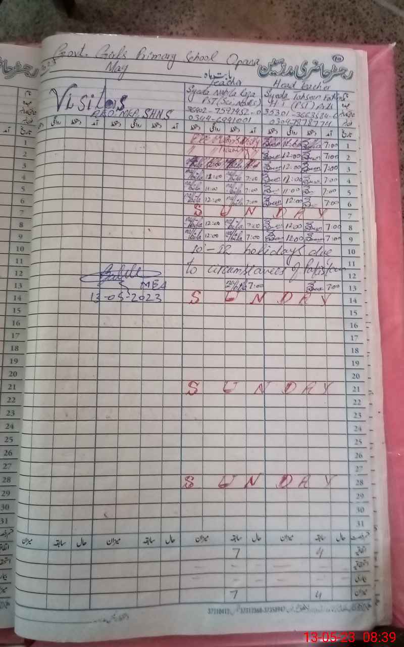 | Name: Sy**** Na**** Designation: (School Headmaster's/Headmistress's) PST(ARTS) Phone/Cell Number: 03**** |