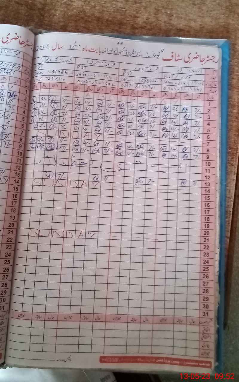 | Name: AS**** AL**** Designation: (School Headmaster's/Headmistress's) PST Phone/Cell Number: 03**** |