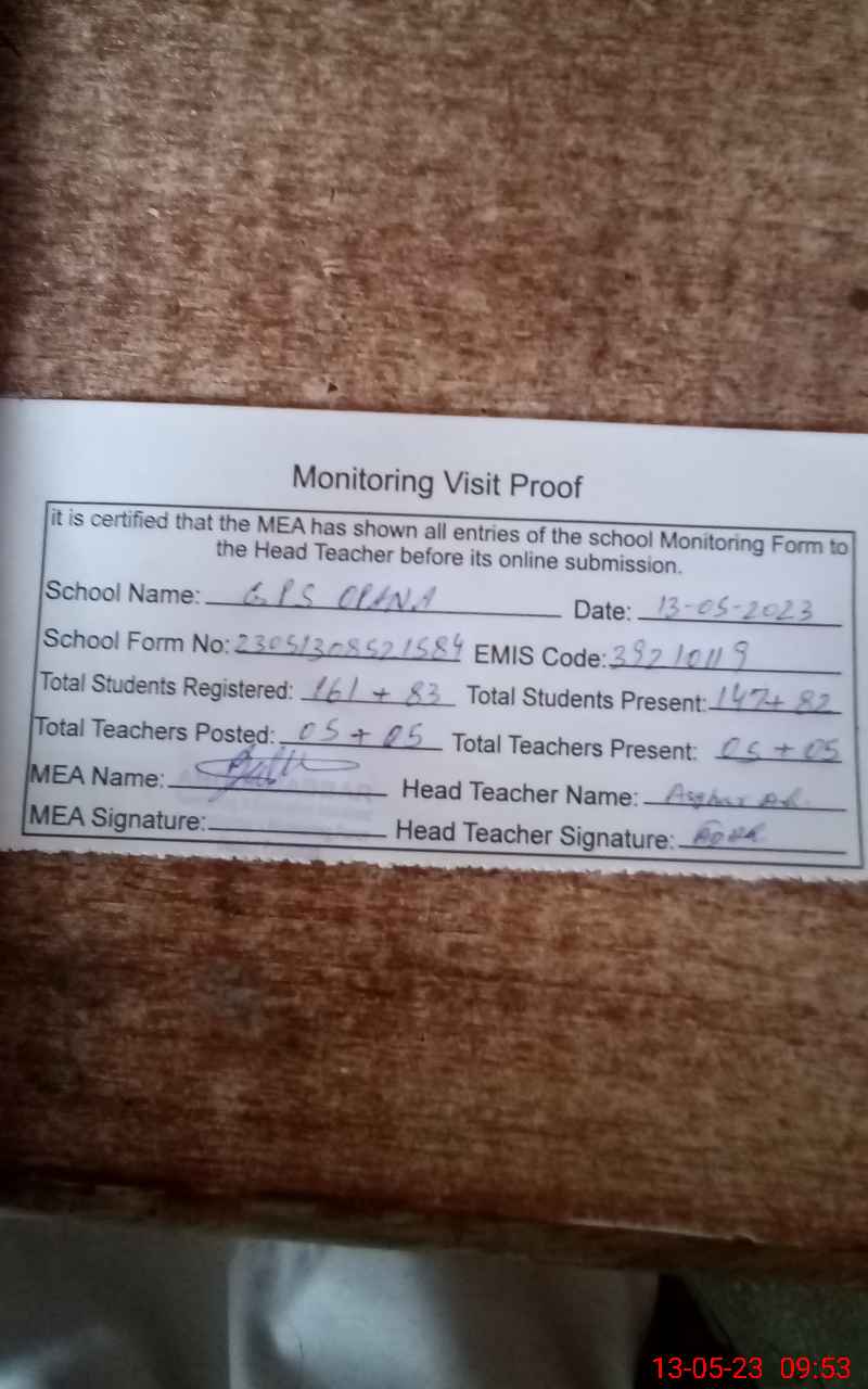 | EMIS Code: 39210119 | Name of School: GPS OPANA | |||