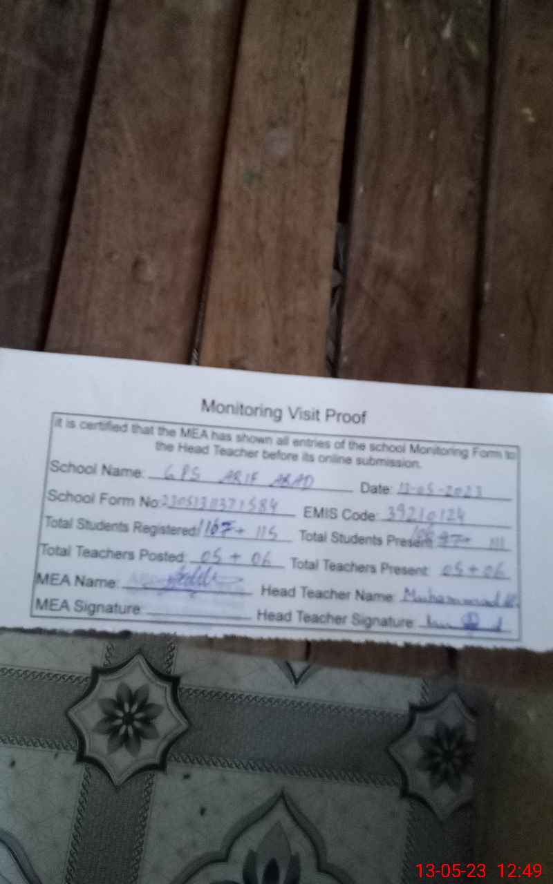 | EMIS Code: 39210124 | Name of School: GPS ARIF ABAD | |||