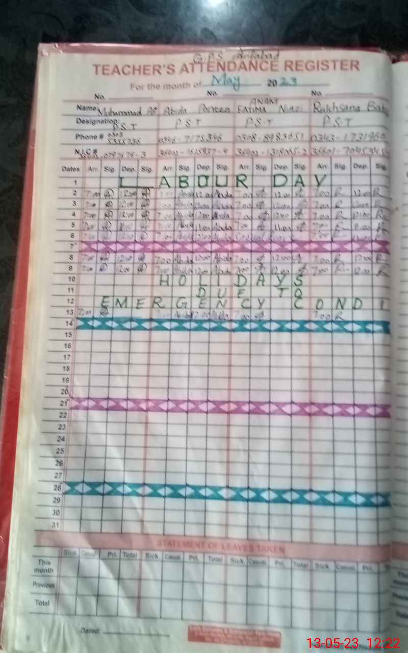 | Name: Ab**** Pa**** Designation: (School Headmaster's/Headmistress's) PST Phone/Cell Number: 03**** |