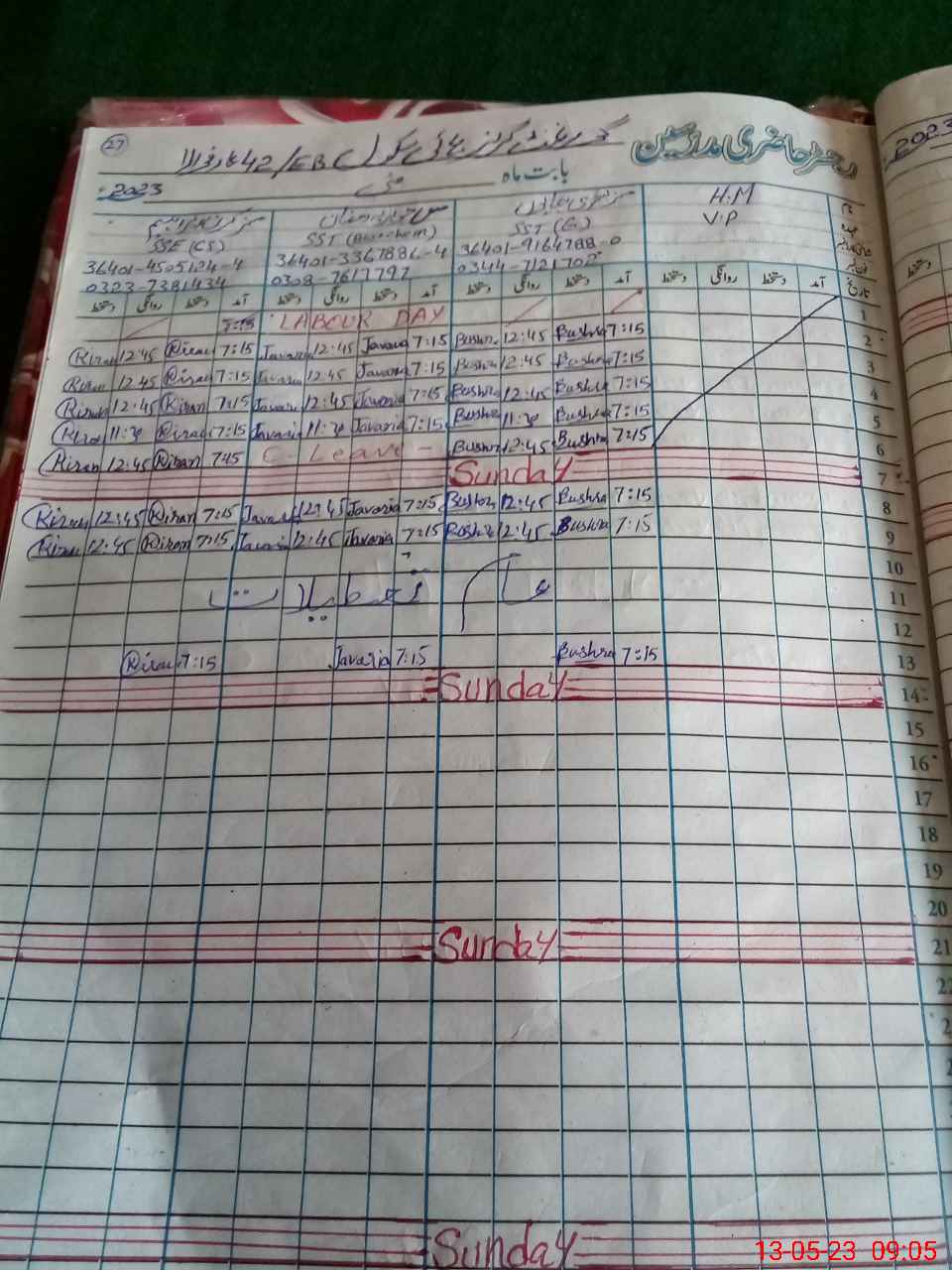 | Name: BU**** HA**** Designation: (School Headmaster's/Headmistress's) SST (GENERAL) Phone/Cell Number: 03**** |