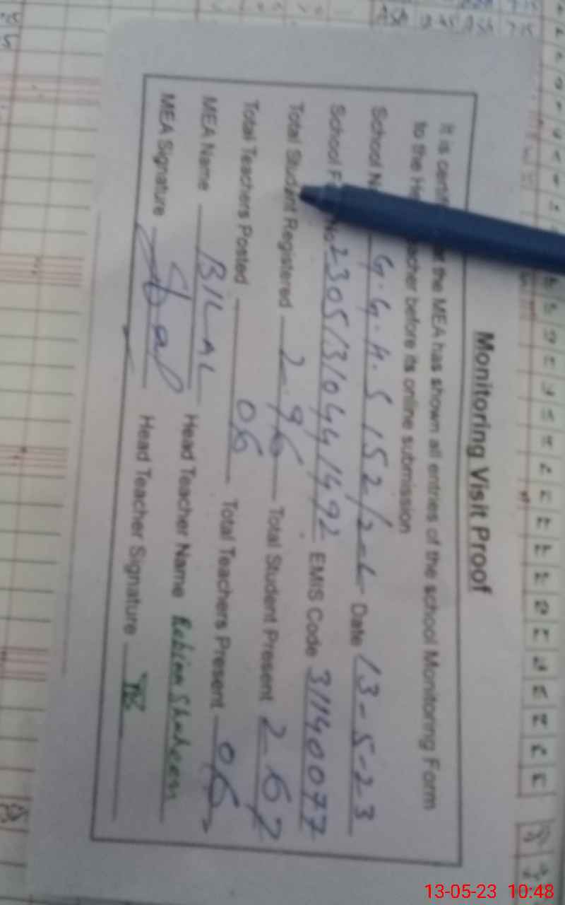 | Certified that this School was Inspected by the Undersigned MEA/DMO Today and the Information Stated Above is as Per Record. | |||||